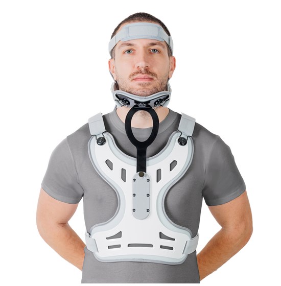 Είναι ραχεοαυχενικός νάρθηκας με πλήρη σταθεροποίηση αυχένα–θώρακα, κατάλληλος για τραυματισμούς και μετεγχειρητική χρήση.