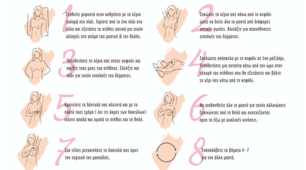 - Ξεκινώντας από την ηλικία των 30 ετών κάνε κλινική εξέταση μαστών κάθε χρόνο και προχώρησε σε υπέρηχο μαστών μετά τα 35.